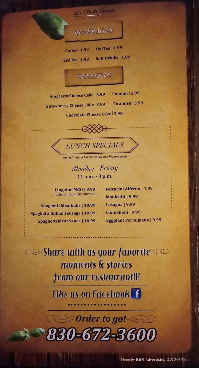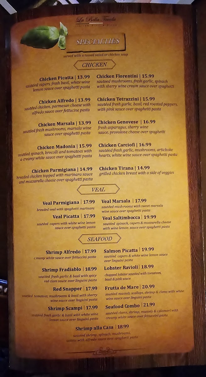 Welcome to La Bella Tavola, where we invite you to indulge in the rich and vibrant tastes of our carefully crafted Italian Grill & Pizza Menu! Nestled at 601 N St Joseph St, Gonzales, TX, our restaurant features a delightful selection of dishes that will transport your taste buds straight to Italy. Start your culinary journey with our mouthwatering Calamari or comforting Chicken Soup, then savor our renowned Chicken Marsala and hearty Spaghetti and Meatballs. Don’t miss our delicious Italian Sausage Calzone or the decadent Lobster Raviolis! For those craving something unique, our gluten-free pizza options and veggie lovers with chicken pizza ensure everyone finds their favorite dish. And of course, save room for a slice of our rich Chocolate Cheese Cake to wrap up your meal on a sweet note. Come experience an unforgettable dining experience tailored for every palate!